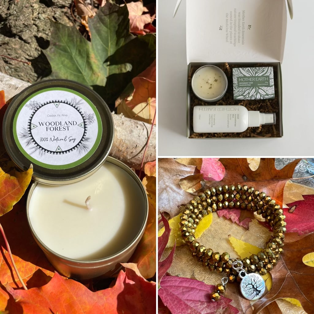 Woodland Forest Soy Candle🌲 Created by Cree/Metis designer, Angela DeMontigny to capture the healing properties of the forest ~ pine, fir and cedar essential oils to bring peace of mind & comfort to your soul and home.